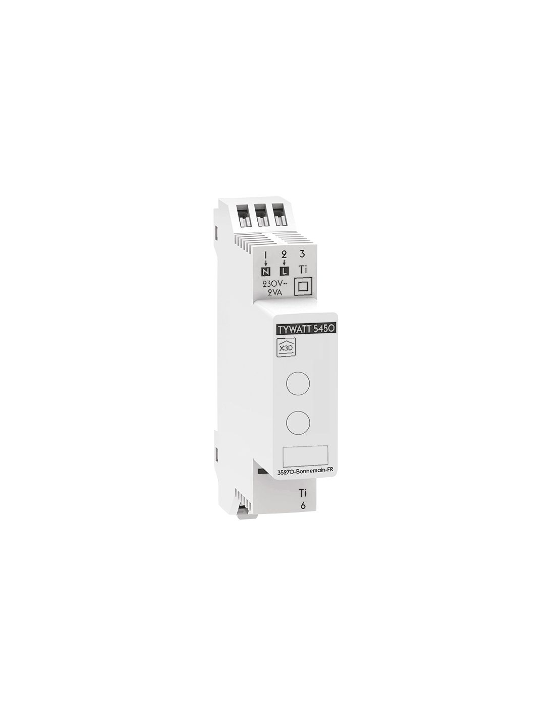 Der TYWATT 5450 ist ein smarter Sensor für die DIN-Hutschienenmontage, der im Schaltschrank installiert wird und mit einer Tydom Smart Home-Schnittstelle kommuniziert. Er misst den Stromverbrauch der Gesamtheit oder eines Postens durch TI (Stromwandler) bei elektrischen oder thermodynamischen Warmwasserspeichern, Wärmepumpen, Heizkörpern, Elektro-Fußbodenheizungen, oder dem Netz von Steckdosen. Er zeig den momentanen Gesamtstromverbrauch an und durch die Historisierung des Verbrauchs nach Tag, Woche, Monat, Jahr können Sie sich auch die Entwicklung des Verbrauchs ansehen. Drei Stromwandler können parallel am selben Eingang angeschlossen werden.
