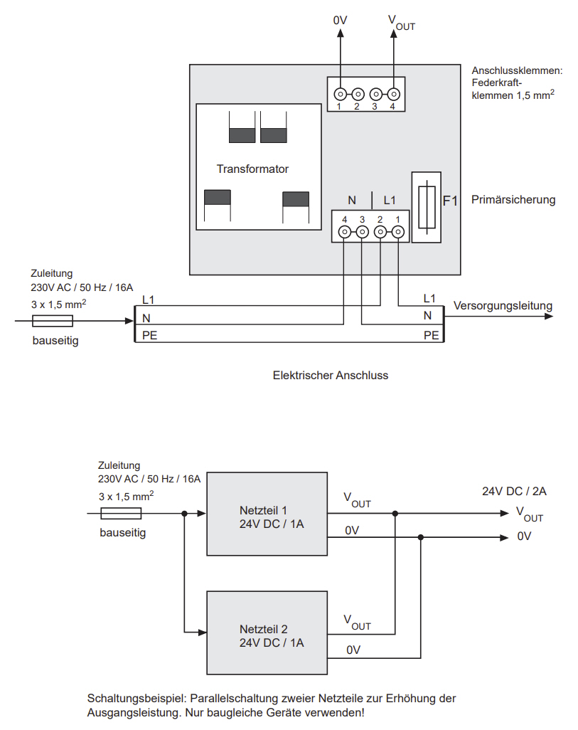 - Stabile 24 V DC Versorgung für Steuerungen und Sensoren