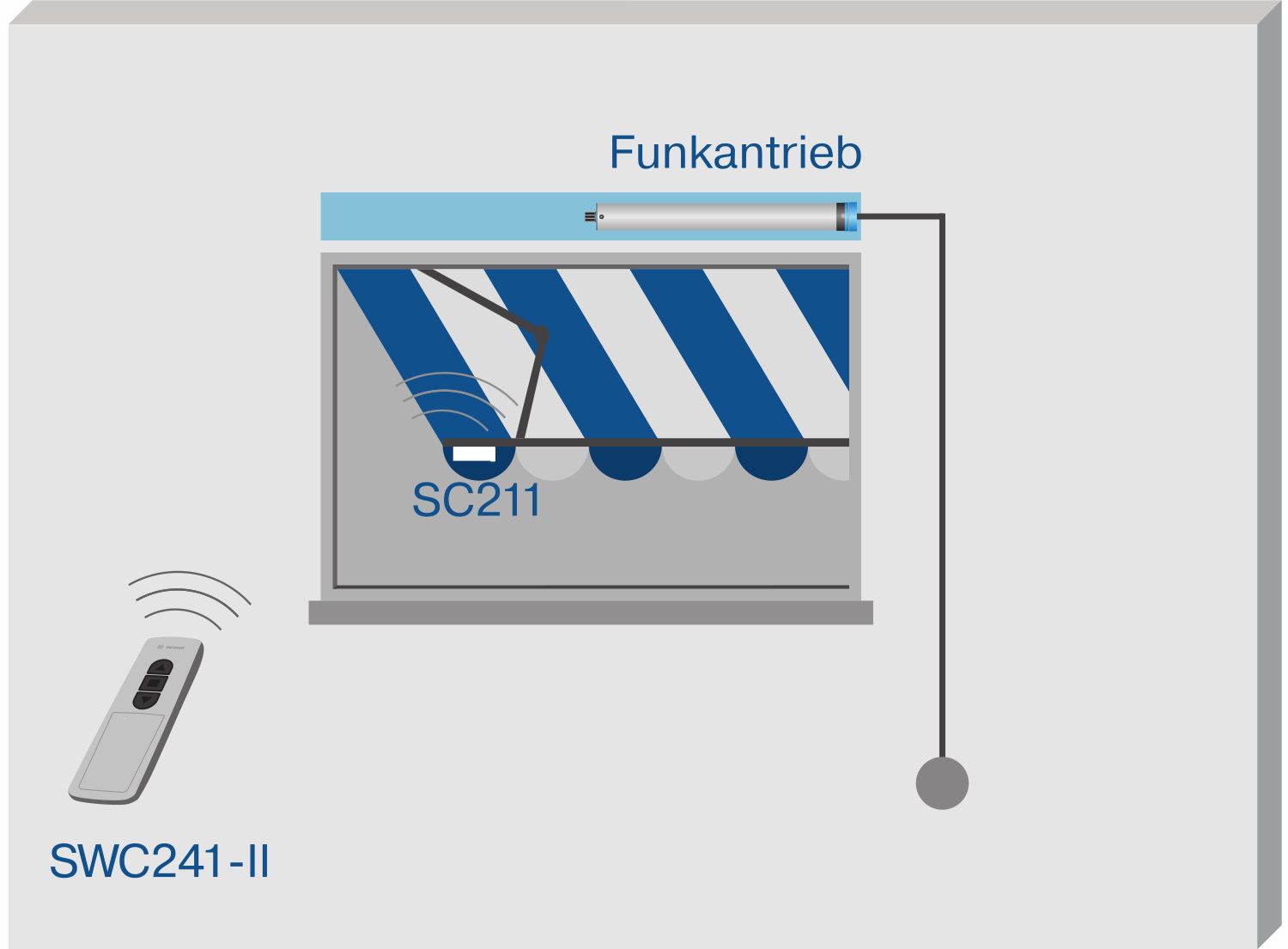 ► Sensor speziell für Gelenkarmmarkisen (Hinweis: Der SC211-II ist ausschließlich für den Betrieb einer offenen, halb- (Halbkassette) oder vollgeschlossenen (Kassette) Gelenkarm-Markise bestimmt.)