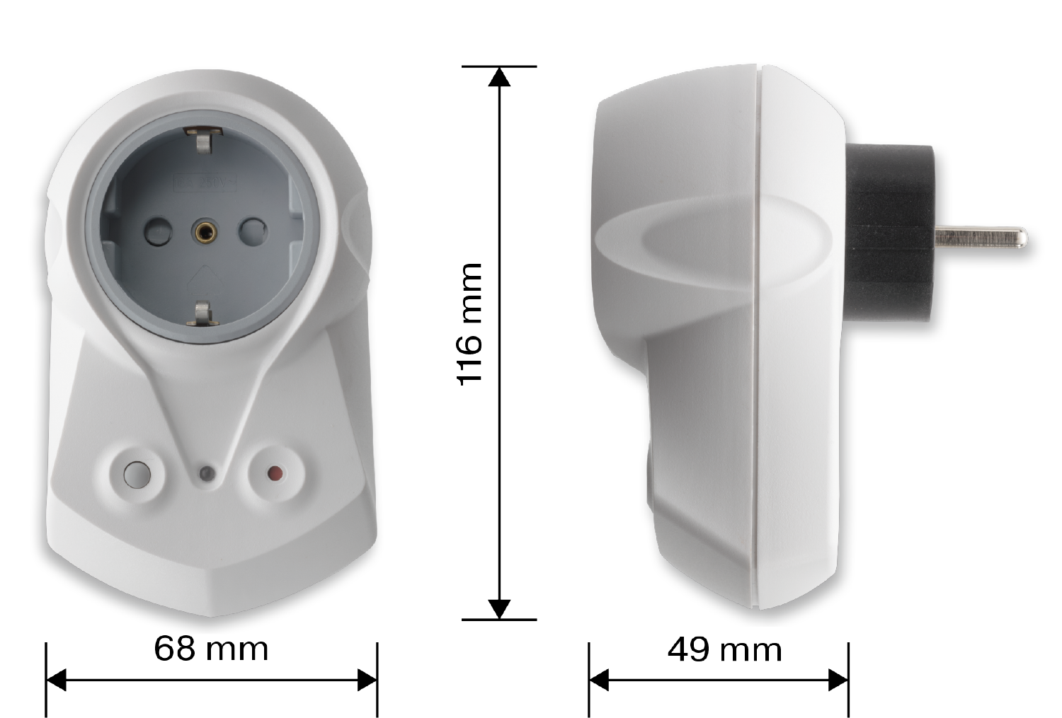 Funksteckdose mit 2-adriger potentialfreier Schaltkontaktanschlussleitung zum Anschluss an den Impulseingang eines Gerätes