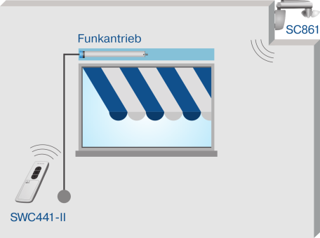 Solar Sonnen-Wind-Sensor Funk mit Handsender. Das Set besteht aus Centronic SunWindControl SWC441-II (4033 000 202 0) und Centronic SensorControl SC861 (4033 000 021 0)