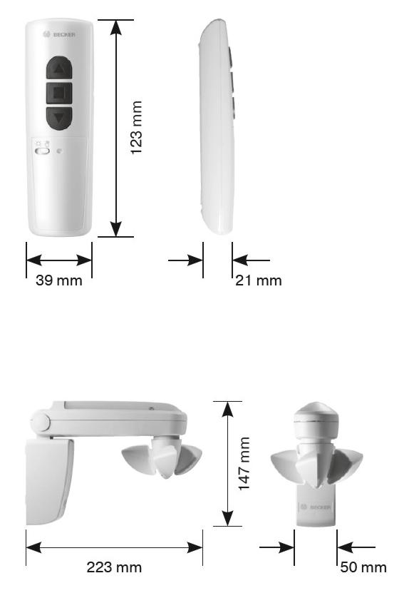 ► Sonnen-Wind-Überwachung von Sonnenschutzanlagen ► Integrierte Solarstromversorgung erspart Kabelverlegung ► Einstellung der Schwellwerte über den Sender möglich ► Wechsel zwischen Hand-/Automatik-Betrieb direkt am Bediengerät möglich ► Verwendbar als Einzel-, Gruppen- oder Zentralsteuerung ► Einbindung in Becker CentralControl möglich ► Verstellbarer Sensorfuß zur optimalen Montage