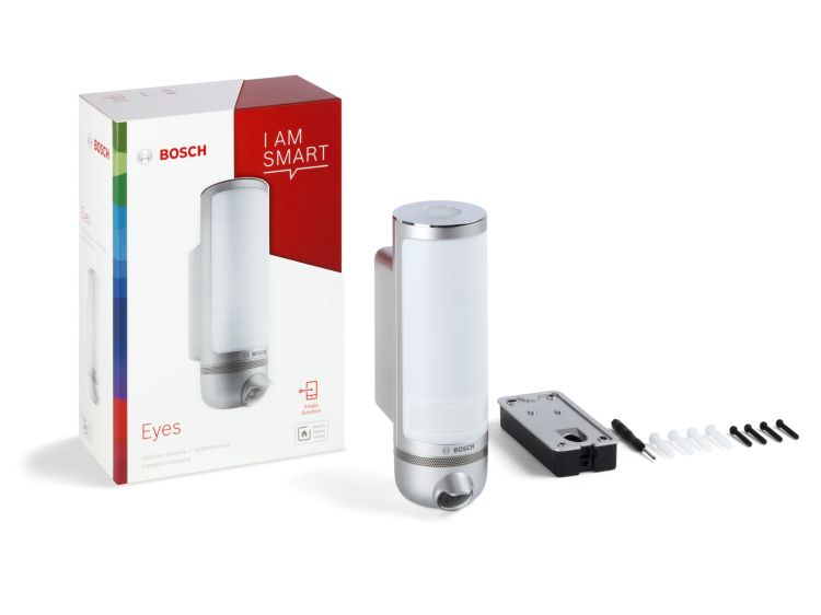 Mit der eleganten Eyes Außenkamera wissen Sie stets, was rund um Ihr Haus geschieht. Einfach an einem vorhandenen Lampenanschluss montierbar, dient sie auch als Außenleuchte mit angenehmem Stimmungslicht und integriertem Bewegungslicht. Sie lässt sich von überall per App bedienen – zuhause auch ganz bequem über den Sprachdienst Alexa. Dank intelligenter Sensoren zeichnet sie ausschließlich relevante Ereignisse innerhalb einer Reichweite von 10 Metern auf und sendet Full-HD-Videos auf Ihr Smartphone – auch bei Nacht. Der integrierte Lautsprecher und das Mikrofon ermöglichen zudem beidseitige Kommunikation zwischen Smartphone und dem Besucher vor Ihrem Haus.Integriert in das Bosch Smart Home System bietet sie als Teil des Alarmsystems noch mehr Sicherheit und Übersicht: Im Alarmfall werden alle eingebundenen Kameras aktiviert und senden Livebilder auf Ihr Smartphone.- Überwacht Ihr Grundstück und sendet bei relevanten Ereignissen Videoclips direkt aufs Smartphone