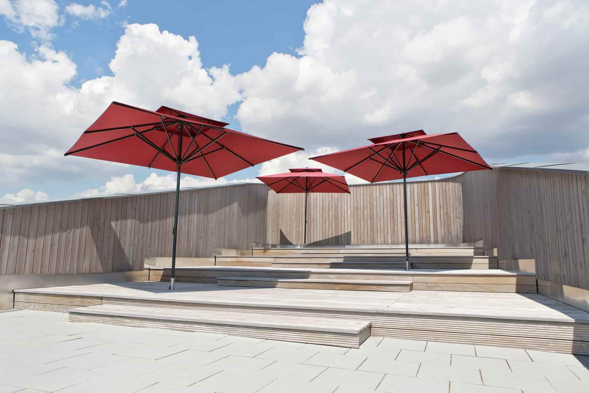Der Caravita Sonnenschirm zeichnet sich durch seine Benutzerfreundlichkeit aus. Ein leichtgängiger Seilzug ermöglicht ein müheloses Öffnen und Schließen des Schirmes. Dank des Premium Acryl-Markisentuchs ist eine lange Haltbarkeit sowie hohe Farbbeständigkeit gewährleistet. Das Gestell ist in verschiedenen Farben erhältlich: klassisches Weiß (RAL 9016), modernes Anthrazitgrau (RAL 7016) oder in silbern eloxierter Ausführung. Der robuste Aluminiummast mit einem Durchmesser von 50 mm und einer Wandstärke von 3 mm sowie die Double-Layer-Powerstreben garantieren Stabilität und Langlebigkeit.