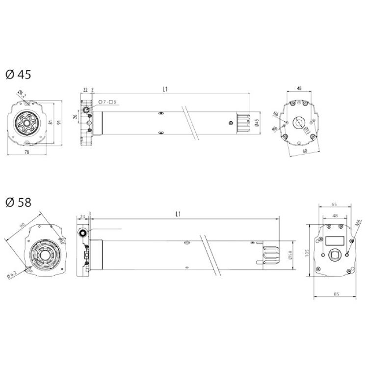 Die geringen Abmessungen ermöglichen die Installation in beengten Platzverhältnissen. Untersetzung 1:24 .