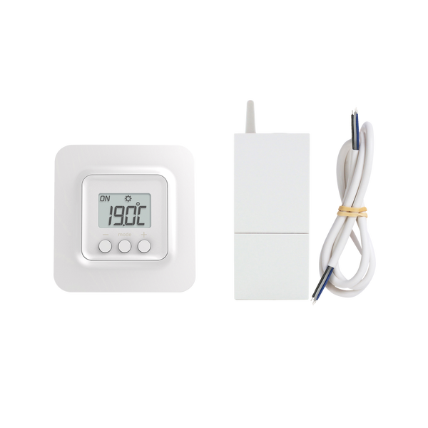 ► Abgekündigt Dezember 2025 - Lieferung unter Vorbehalt, da Auslaufmodell Das TYBOX 5300 ist ein Funk-Raumthermostat für reversibles/nicht reversibles Ein- oder Mehrzonen-Heiz-System und steuert Heizkessel, Holzöfen, Wärmepumpen, Ventile oder Umwälzpumpen oder motorisierten Klappen (bei Splitt-Klimaanlagen). Das Thermostat und der Empfänger werden für eine schnellere Installation werkseitig eingelernt und die intuitive Benutzeroberfläche vereinfacht die Einstellungen. Das TYBOX 5300 steuert 3 Betriebsarten: Heizen, Kühlen und Aus. Sie können die Produkte frei aufstellen und damit optimal für mehr Komfort und Einsparungen die Temperatur erfassen. Das Funk-Raumthermostat zeigt die Raumtemperatur der Zone an und verfügt über eine PID- (proportionale integrale differenziale; Zeitbasis einstellbar) oder Ein/Aus-Regelung. Sie können auch eine Tastensperre einstellen (z. B. für ein Kinderzimmer oder ein gemeinsam genutztes Büro usw.). Das TYBOX 5300 steuert (in Kombination mit einem Öffnungsmelder) automatisch die Absenkung bei Erfassung eines offenen Fensters. In Verbindung mit einer Tydom Smart Home-Schnittstelle steuern und programmieren Sie die Heizung und andere Bereiche (Rollläden, Alarmanlage, Beleuchtung) entspannt über ein Smartphone, Tablet-PC oder per Sprache.