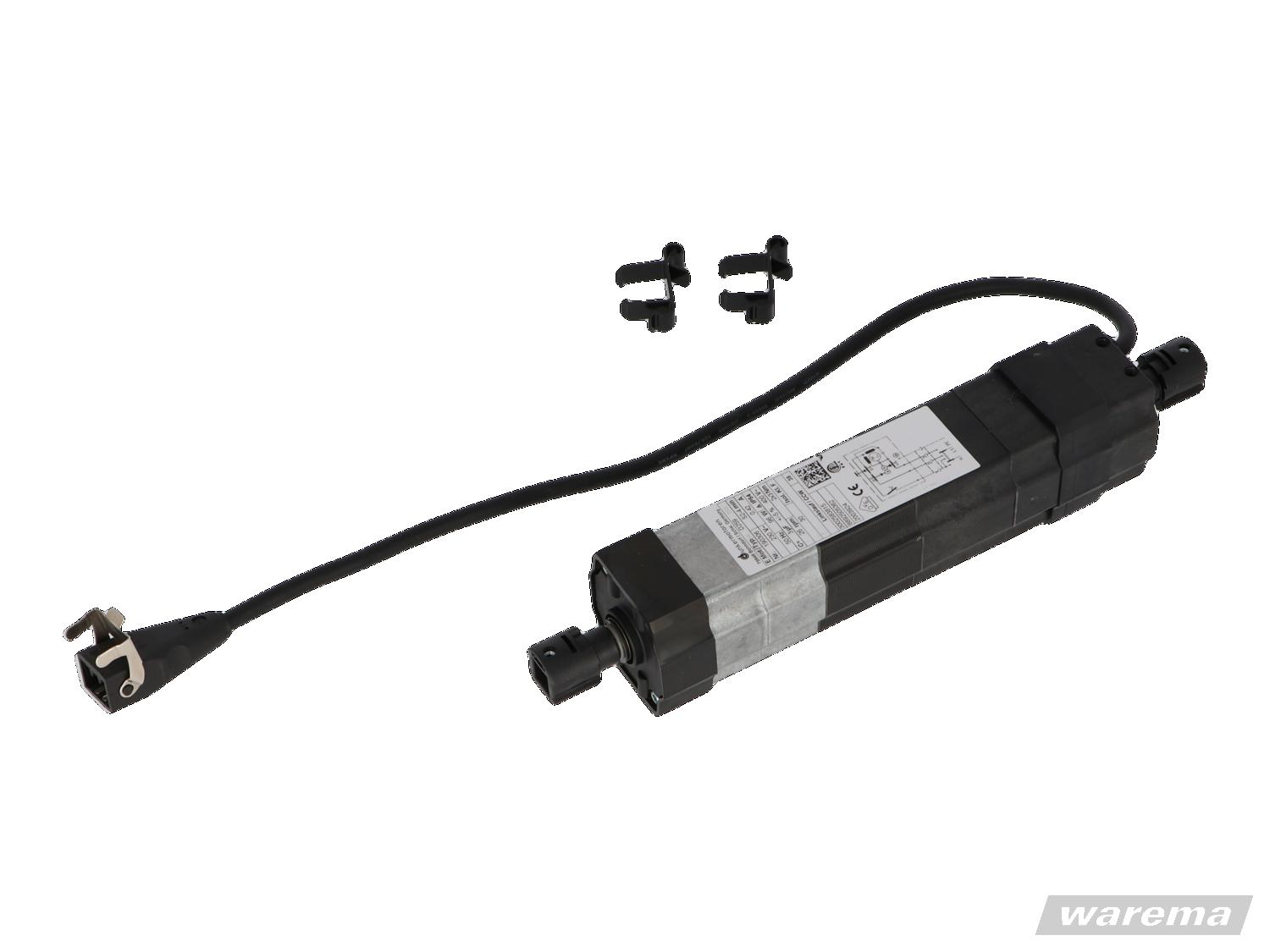 Bei diesem Antrieb handelt es sich um einen Austauschmotor für WAREMA Raffstoren/Jalousien. Die Endlagen werden mittels selbsthaltenden Druckknöpfen eingestellt. Für die Endlageneinstellung ist kein Zubehör notwendig.