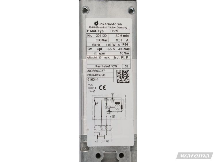 Startseite » Antriebe/Motore » Jalousieantriebe » WAREMA Raffstoreantriebe » Dunker D539 10/26 Jalousieantrieb 10 Nm (WAREMA #616044)