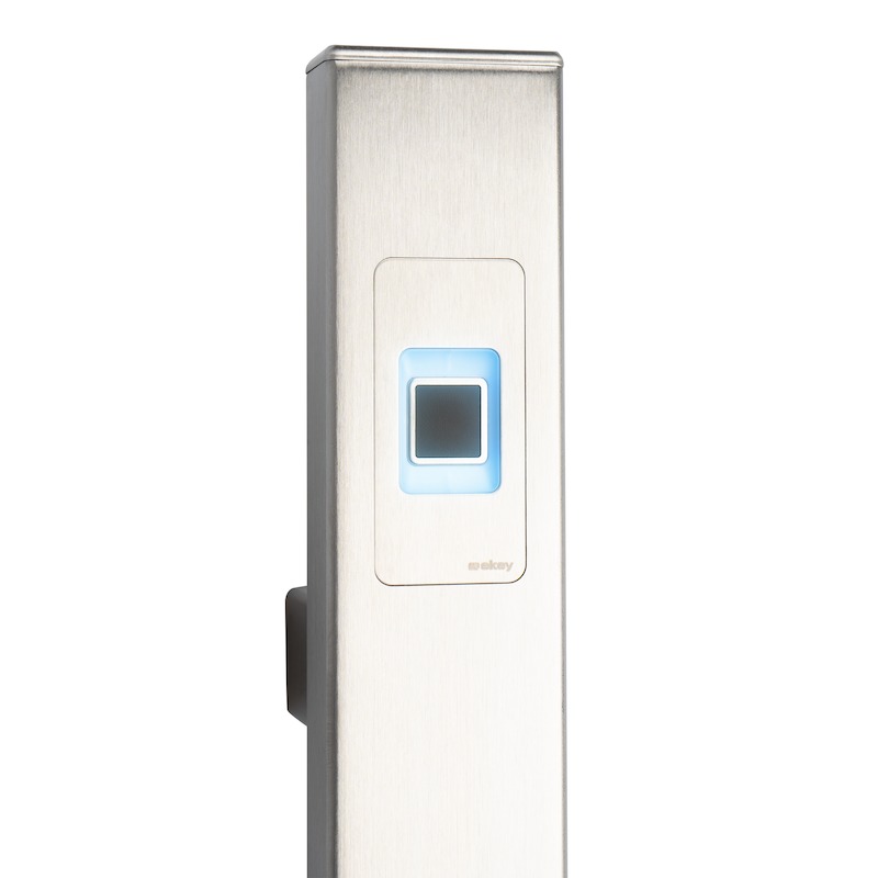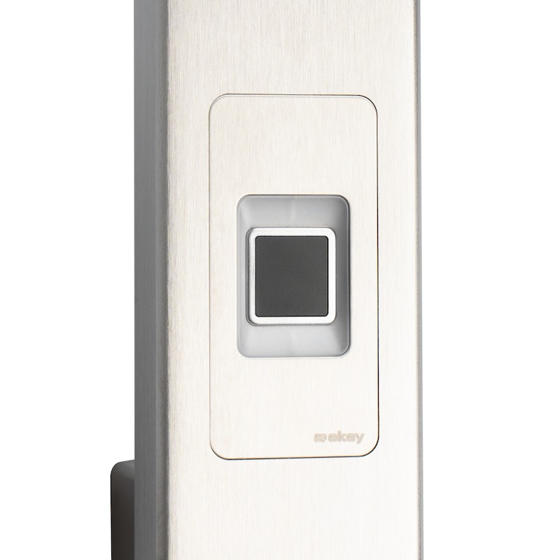 Der ekey dLine Türgriff aus Edelstahl hat den ekey dLine Fingerprint bereits integriert und kann bei allen gängigen Alu-, Kunststoff- oder Holztüren verwendet werden. Der ekey dLine Fingerprint ist eine biometrische Zutrittslösung, die mittels intuitiver Touchbedienung schlüssellosen Zugang zu Gebäuden gewährt. Die Touchbedienung des Fingerprint ist besonders benutzerfreundlich. Bereits Kinder ab ca. 6 Jahren haben Spaß an der intuitiven Bedienung. Der Türgriff ist für den Heim- und Gewerbebereich vorgesehen. Die Tür erhält darüber hinaus smarte Funktionen, sodass die intelligente Nutzung eines Gebäudes an der Haustür beginnt. Die Administration des Systems erfolgt über die ekey bionyx App.Der Türgriff im Detail: