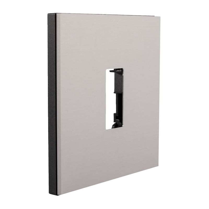 Das ekey Modul für Gira System 106 ist ein Einbaumodul in Aluminium, das den ekey Fingerscanner Unterputz für die Integration in der Türstation Gira System 106 abdeckt. Das ekey Modul ist für die Verwendung im Heim- und Gewerbebereich vorgesehen. Das ekey Modul ist für die ortsfeste Montage auf dem ekey Fingerscanner Unterputz für die Integration in der Türstation Gira System 106 und für den Einsatz im geschützten Außenbereich vorgesehen. Dieses ekey Modul ist eine Komponente des ekey Fingerscanners Unterputz für die Integration und kann nur dort verwendet werden.- Länge/Höhe: 106,5 mm