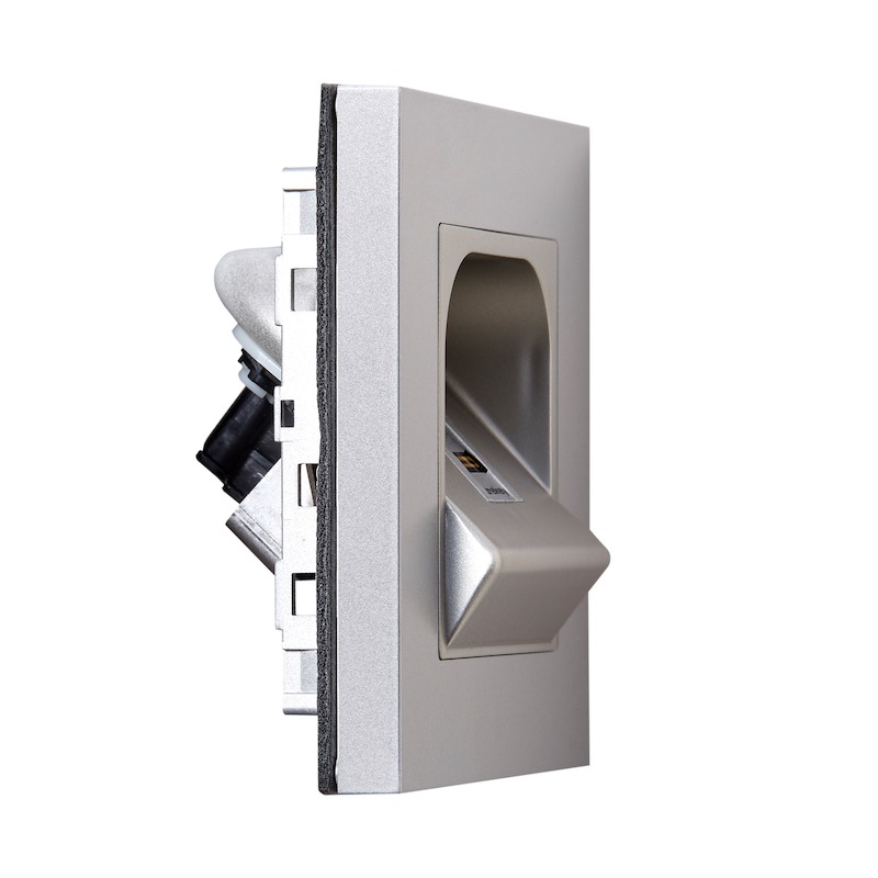 Das ekey ModulS für Siedle Vario Unterputz ist ein Einbaumodul in der Farbe Silber-Metallic, das den schräg positionierten ekey Fingerscanner Unterputz für die Elektrobranche in der Siedle Vario Unterputz Sprechanlage abdeckt. Das ekey ModulS ist für die Verwendung im Heim- und Gewerbebereich vorgesehen. Das ekey ModulS ist für die ortsfeste Montage auf dem Fingerscanner Unterputz für die Elektrobranche in der Siedle Vario Unterputz Sprechanlage und für den Einsatz im ungeschützten Außenbereich vorgesehen. Dieses ekey ModulS ist eine Komponente des ekey Fingerscanners Unterputz für die Elektrobranche und kann nur dort verwendet werden.- Montagehöhe min: 100 cm