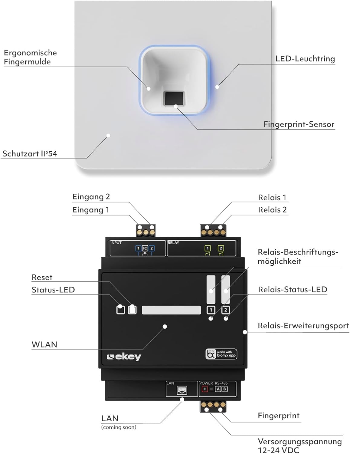Das ekey sLine Fingerprintset für Sprechanlagen ist eine biometrische Zutrittslösung, die mittels intuitiver Touchbedienung schlüssellosen Zugang zu Gebäuden gewährt. Das Fingerprintset ist für die Verwendung im Heim- und Gewerbebereich vorgesehen. Das Set beinhaltet das Sprechanlagenmodul mit integriertem ekey sLine Fingerprint sowie den ekey Controller REG mit zwei Relais. Die Administration des Systems erfolgt über die ekey bionyx App.- Minimale Montagehöhe: 105 cm