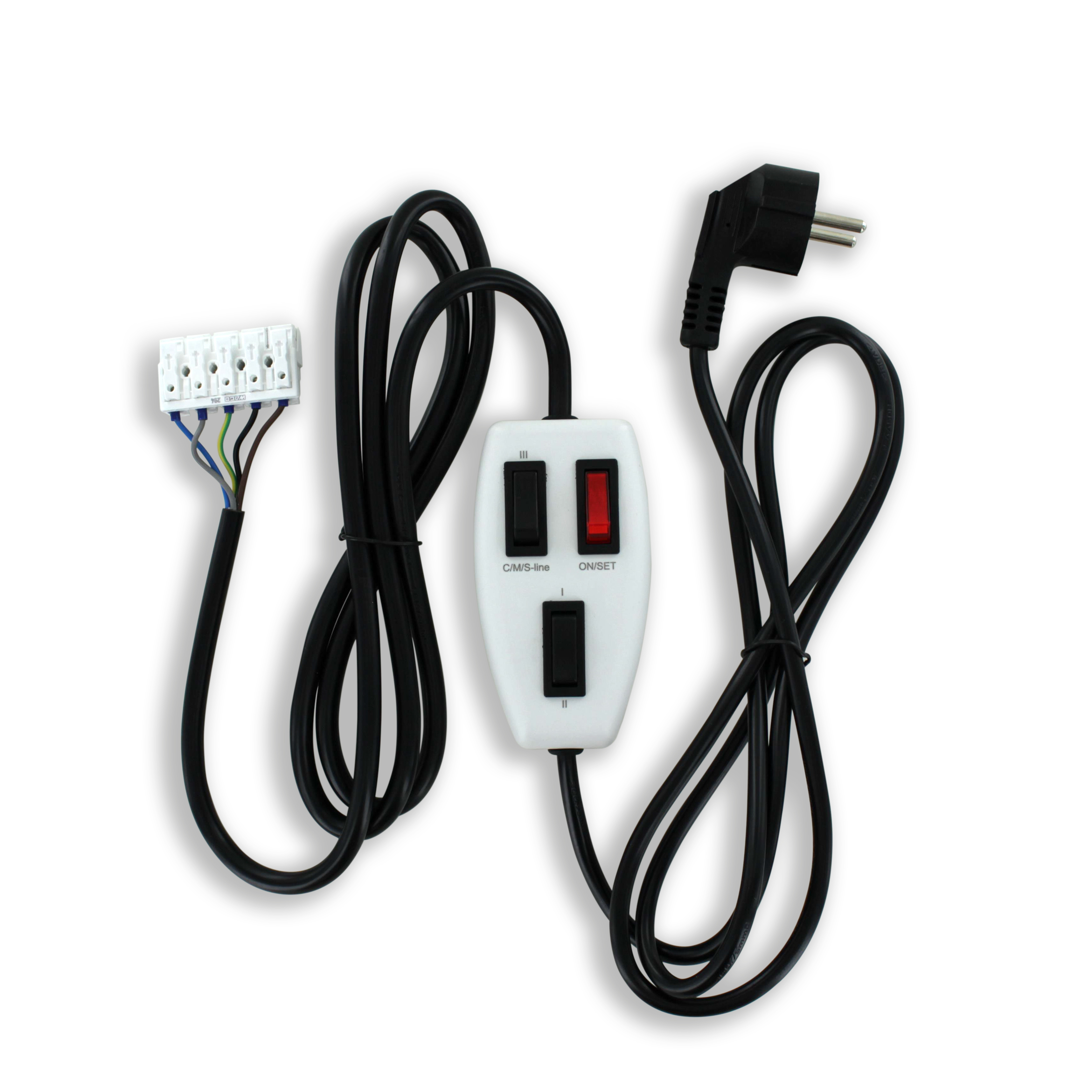 Die separate Tasten ermöglichen die unabhängige Steuerung der Stromversorgung und der Drehrichtung des Motors. Die Vorteile sind eine Einhandbedienung für die Konfiguration und vernetzte Schalter auf der Konsole für die einfache Einstellung der Endlagen eines Tymoov-Motor. Der Anschluß der Drähte erfolgt per Schnellverbinder.