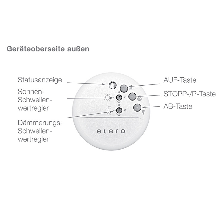 Startseite » Steuerungen » Funksteuerungen » elero ProLine 2 bidirektional » elero Lumo-868 Funk Licht-, Dämmerungs- und Glasbruchsensor #284200006