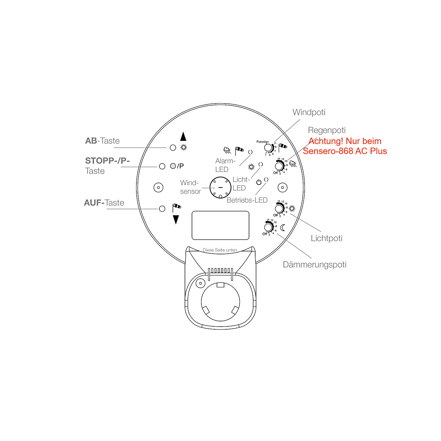 - Funk-Sensorik für die Licht- und Windauswertung (ohne Regenfunktion!)