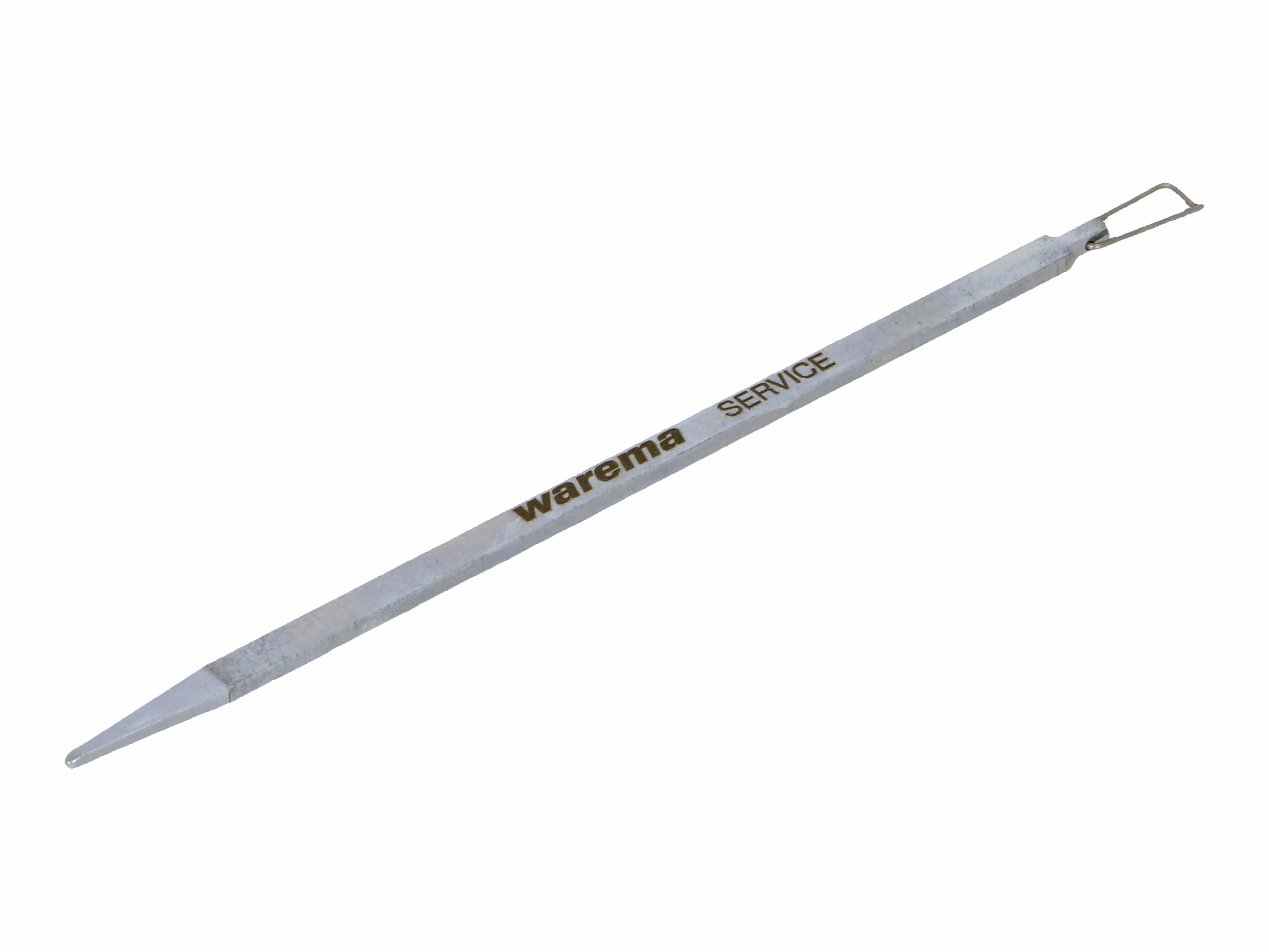 Metallnadel zum Durchfädeln des Texbandes durch das Lamellenpaket. Vereinfacht die Reparatur bzw. den Tausch des Tex- bzw. Raffstore-Aufzugbandes durch die Lamelle.