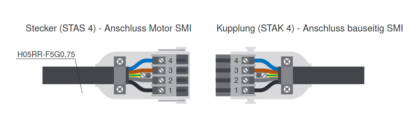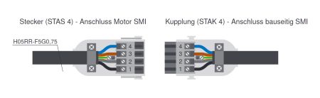 ► 4-poliger (+PE) Kupplung (Weibchen) zum Anschließen an die bauseitige Leitung (4-polig + PE)