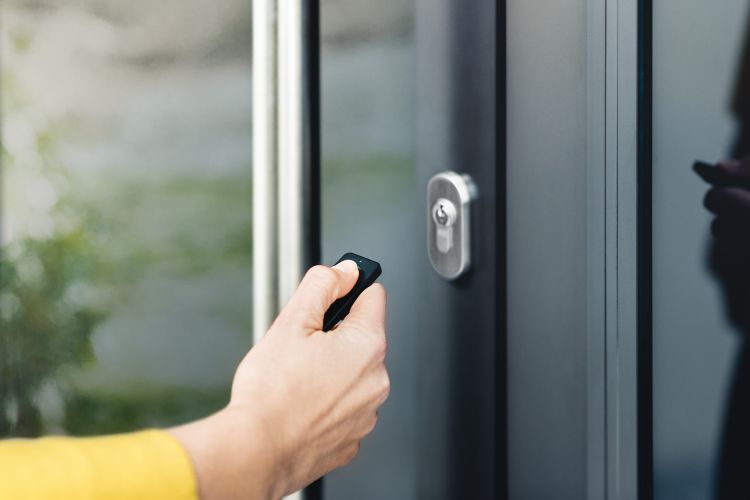 - Positioniere dich mit dem Fob in der Nähe des zu berechtigenden Smart Locks (max. 5m Entfernung).