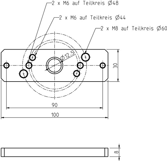 Antriebslager für Rohrmotore mit Handkurbel, Markisen, mit Gewinde M6 auf Teilkreis 48 mm bzw. M8 auf Teilkreis 60 mm.