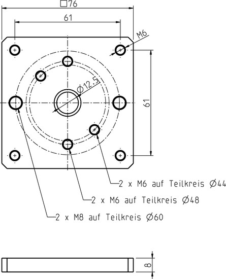 Antriebslager für Rohrmotore mit Handkurbel, Markisen, mit Gewinde M6 auf Teilkreis 48mm bzw. M8 auf Teilkreis 60mm.