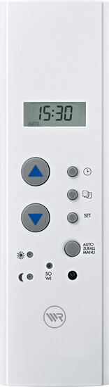Die Gurtkastenuhr Modi bietet umfangreiche Automatikfunktionen zur Vereinfachung Ihrer Rollladensteuerung. Mit dem Tages-/Wochenprogramm können Ihre Rollläden unter der Woche und am Wochenende automatisch gesteuert werden. Um eine Abwesenheit zu simulieren, kann die integrierte Zufallsfunktion die Schaltzeiten zufällig verzögern. Zusätzlich ermöglicht der als Zubehör erhältliche Sonnen-/Dämmerungs-Sensor eine helligkeitsabhängige Steuerung des Sonnenschutzes.