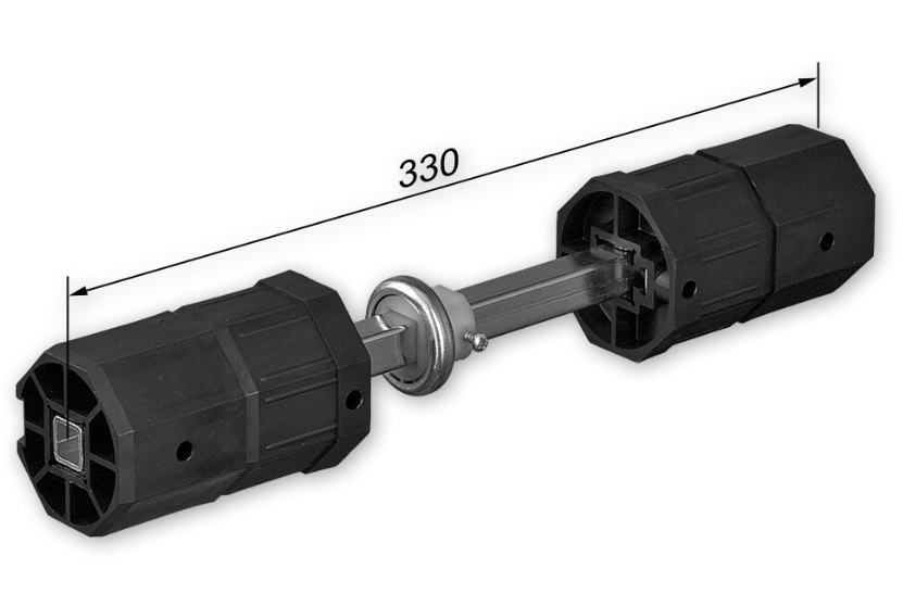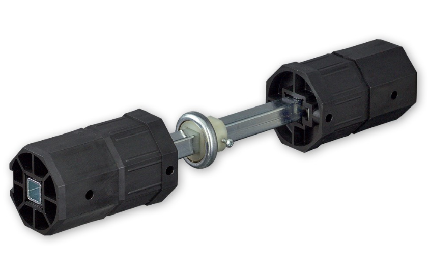 Der Doppelwellenbolzen SW 60 von SELVE wird verwendet, um zwei Achtkant-Wellen mit einer starren Verbindung miteinander zu verbinden. Dies kann vorkommen, wenn zwei gleich hohe Rolläden direkt nebeneinander liegen oder wenn Anlagen wegen Überbreite getrennt werden müssen. Diese Anlagen werden an einer Stelle angetrieben (Motor / Getriebe / Gurtwickler).Der Wellenbolzen SW 60 von SELVE wird zwischen zwei Achtkant-Wellen angebracht und in der Mitte über das Kugellager abgelagert. Eine Doppelhalterung mit Lagerschale für ein Kugellager D=50 oder 40 mm muss zwischen den Wellen-Enden in entsprechender Position montiert sein. Die Walzenkapseln des Wellenbolzens werden in die zwei Enden der Achtkant-Wellen eingeschoben. Die einzelnen Kapseln – besonders die zwei Endkapseln mit Anschlag – können individuell verstellt werden. Abschließend werden die Schrauben an den Endkapseln angezogen, um die Einbaulage zu fixieren.