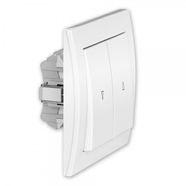 Der Doppelwippentaster wird in eine Unterputzdose eingesetzt und dient der Steuerung von Rollladen. Zur Bedienung eines Rolladenmotors wird einer der zwei Taster in gewünschter Fahrrichtung betätigt. Der Taster rastet nicht ein.