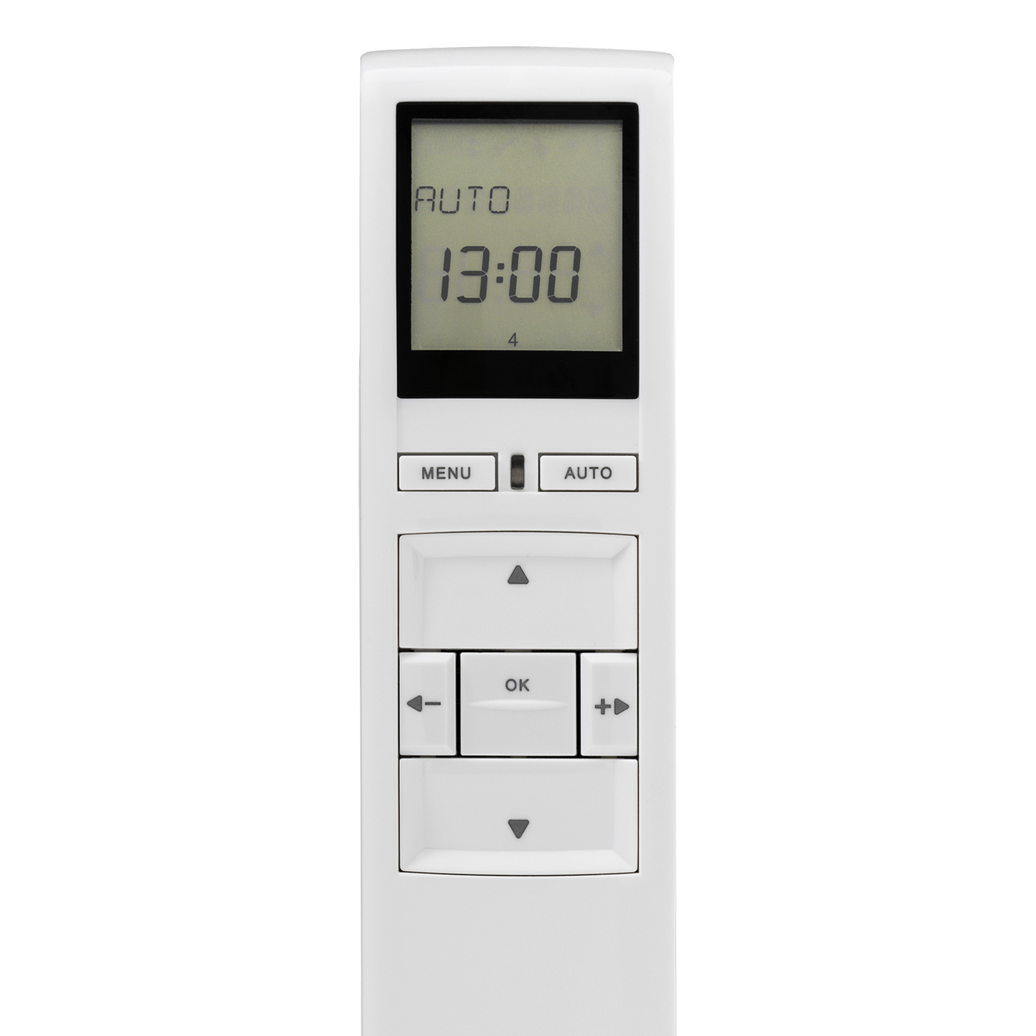 Der iveo Multi Send hat 10 Kanäle mit je einer Zeitschaltuhr und steuert damit die Rollläden zu einer festen Uhrzeit oder zur Sonnenuntergangszeit. Pro Kanal können mehrere Empfänger eingelernt werden, so dass diese als Gruppe gleichzeitig die Fahrbefehle ausführen.Produktmerkmale