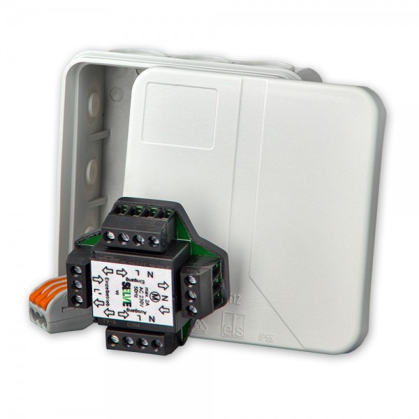 Das Trennrelais dient zur Ansteuerung von zwei Rolladenmotoren von einer Schaltstelle (Rolladenschalter, Rolladentaster, Zeitschaltuhr).Das Trennrelais wird zusammen mit einem Gehäuse ausgeliefert. Es kann im Gehäuse Aufputz montiert werden. Es muss verwendet werden, wenn zwei EVEROXX- oder SELVE SP-Rolladenmotoren mit einer Schaltstelle bedient werden sollen. Nähere Informationen können der Bedienungsanleitung entnommen werden. Inklusive 3-fach WAGO-Klemme für flexible und starre Leiter um die jeweiligen PE-Schutzleiter miteinander zu verbinden.