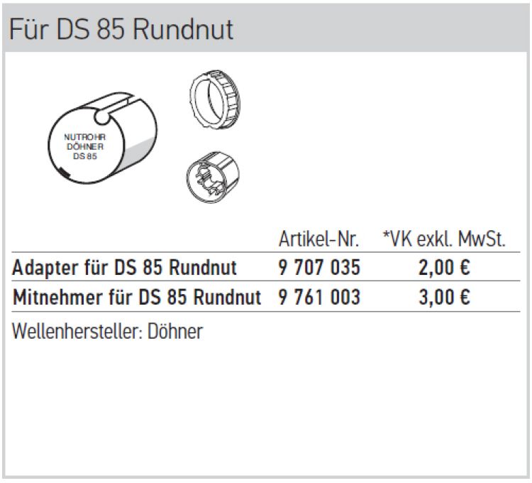Somfy ➤ Adapter und Mitnehmer für DS 85 Rundnut Baureihe 50 #9707035 #9761003✅ online günstig kaufen! *1