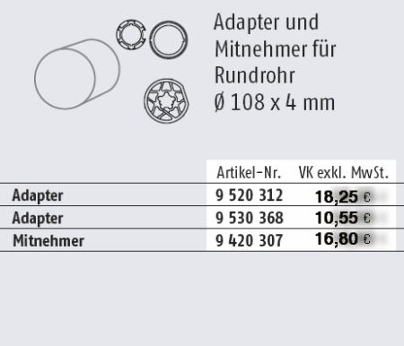 Somfy Adapter und Mitnehmer für Rundrohr 108 x 4 mm Baureihe 60 #9520312 #9530368 #9420307