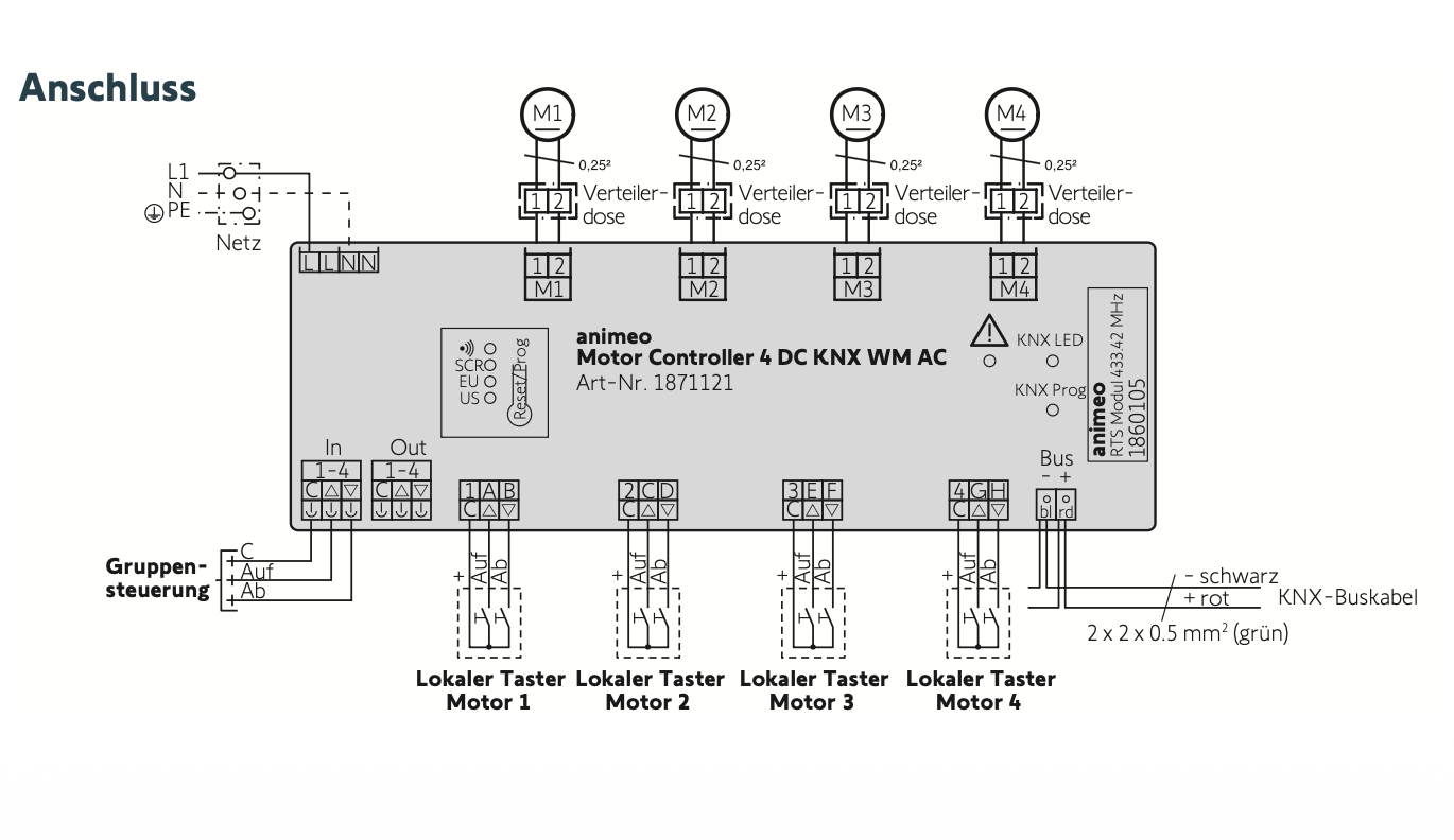 Startseite » Steuerungen » Bedrahtete / kabelgebundene Steuerungen » Somfy animeo KNX » Somfy animeo Motor Controller 4 DC KNX WM AC #1871121