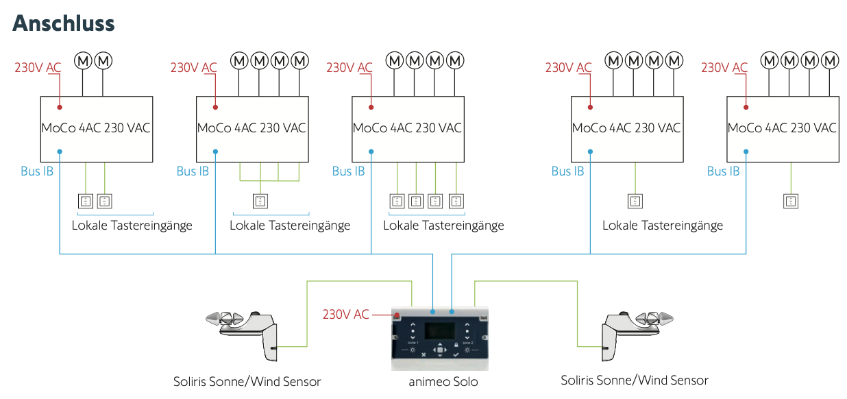 - Für maximalen Funktionsumfang (RTS, EnOcean Funkempfänger) empfehlen wir 4-fach animeo IB+ Motor Controller