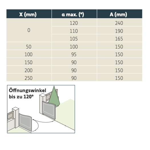 | Benötigter Raum hinter Torflügel | mindestens 490 mm |