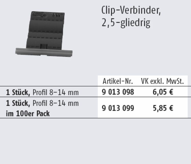 Auswahl der Clip-Verbinder je Rollladen