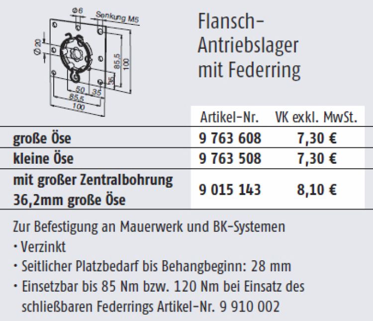 Somfy ➤ Flansch-Antriebslager mit Federring und kleiner Öse für Baureihe 50/60 #9763508✅ online günstig kaufen!