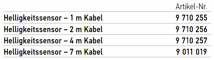 - Helligkeitssensor mit Kabel in gewünschter Länge