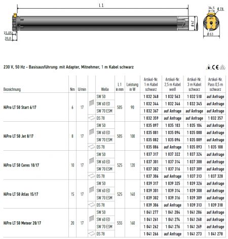 Somfy HiPro LT 50 Jet 8/17 Markisenmotor DS78 #1035086 #1035093 #1035108