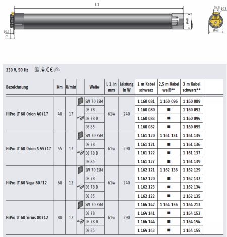 Somfy HiPro LT 60 Orion S 55/17 Markisenmotor DS85 #1161127 #1161139