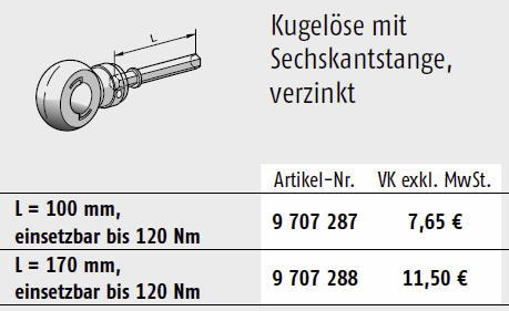 Somfy Kugelöse NHK-Kompakt L= 100 mm mit Sechskantstange, verzinkt #9707287