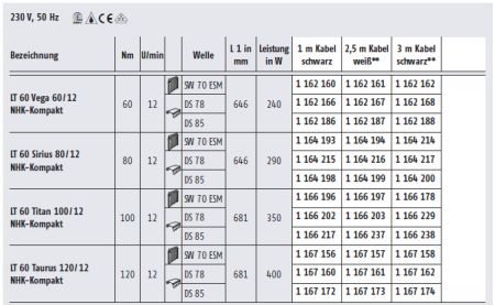 | Bezeichnung | LT 60 Vega 60/12 NHK |