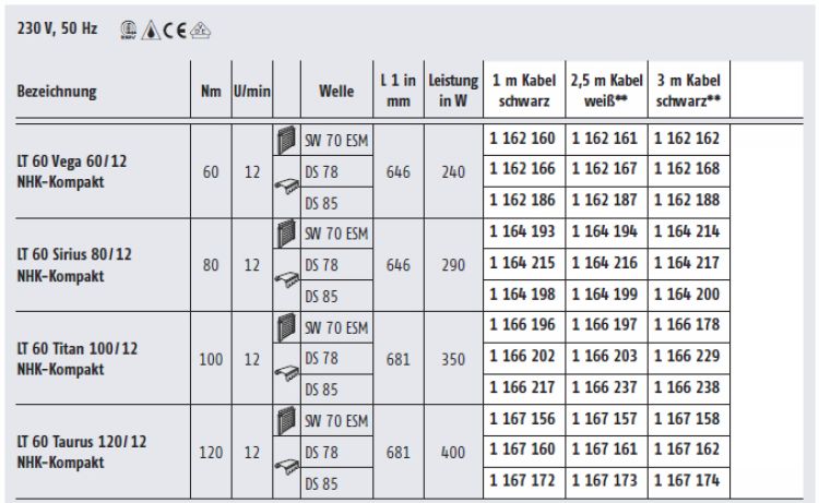 - Rollladenmotor LT 60 Sirius 80/12 NHK