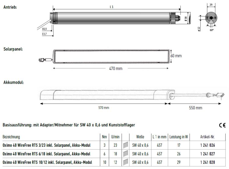 Somfy Oximo 40 WireFree RTS II 6/18 Solareinsteckantrieb Welle SW 40 x 0,6
