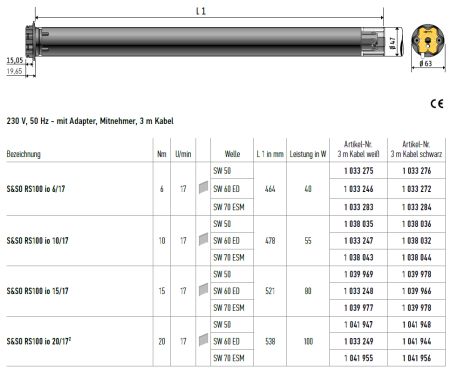 Somfy S&SO-RS100 io 20/17 Rollladenmotor SW60 ED #1033249 #1041944