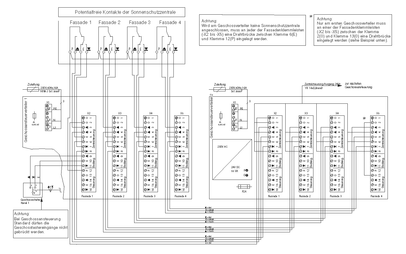 - Etagenbedienung von bis zu 4 Fassaden über anschließbare Jalousieschalter