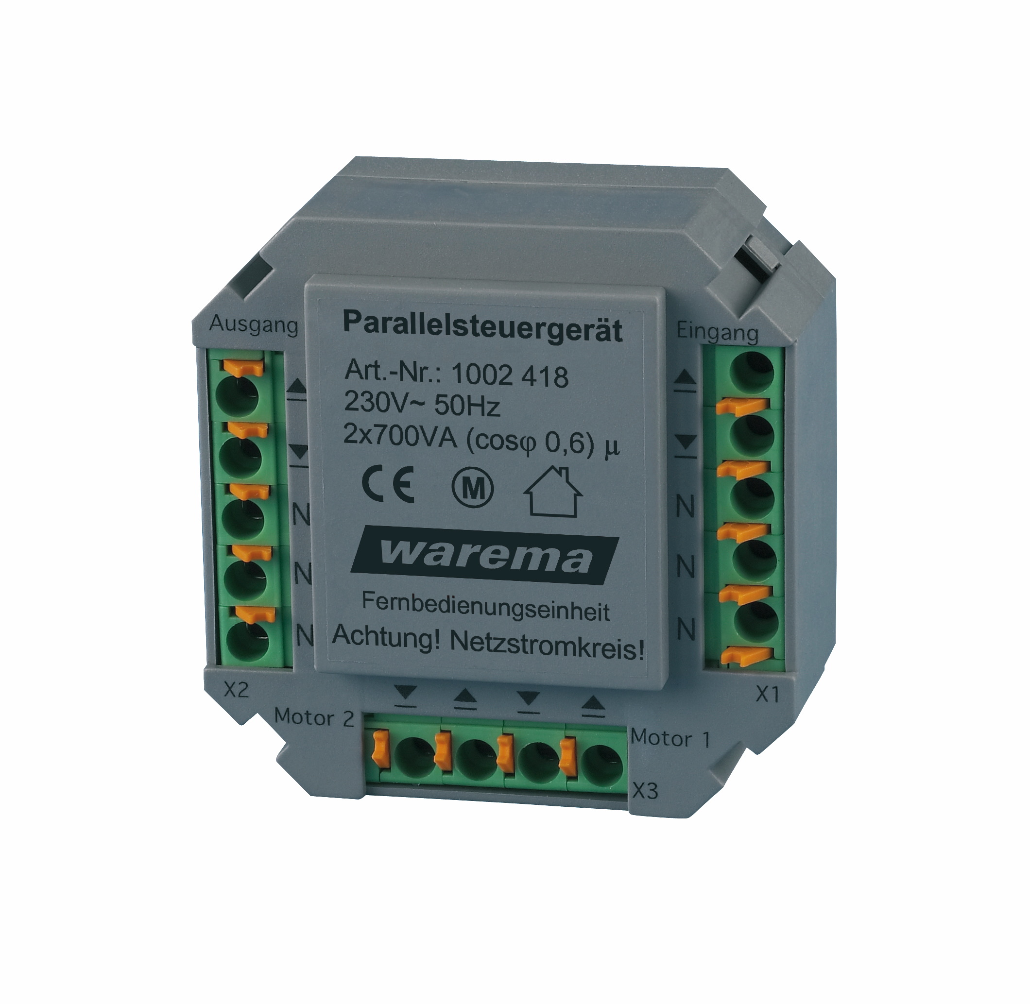 Startseite » Steuerungen » Bedrahtete / kabelgebundene Steuerungen » Motorsteuereinheiten / Motorsteuergeräte (MSE / MSG) » WAREMA Parallelsteuergerät Auf- oder Unterputz #1002420 #1002418
