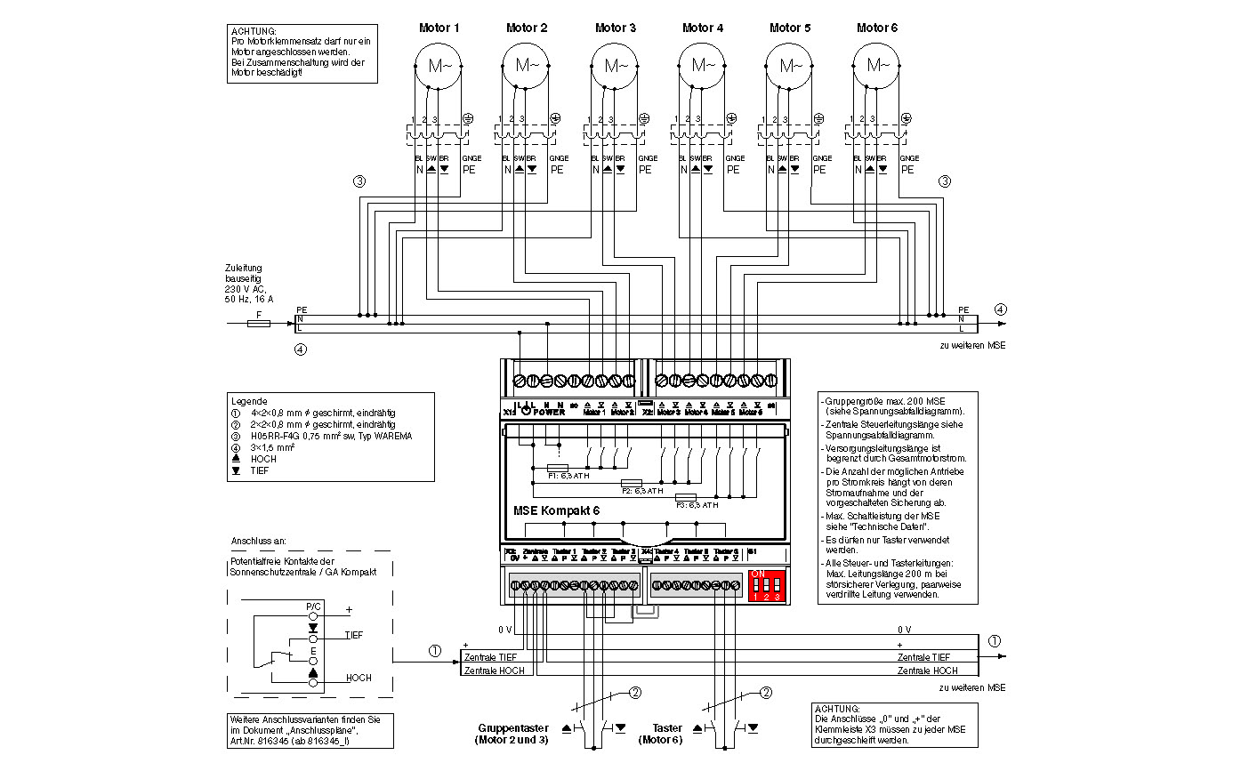 - mehrere Motorsteuereinheiten können zu einer Gruppe zusammengefasst und von einem Taster gemeinsam bedient werden