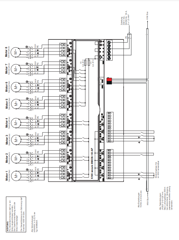 Mit den KNX secure Aktoren 230 V können unabhängig voneinander bis zu acht Sonnenschutzantriebe mit 230 V AC gesteuert werden. KNX Aktoren der secure Baureihe entsprechen dem "KNX Secure Standard". Das heißt, der Zugriff ist nur für berechtigte Teilnehmer möglich.