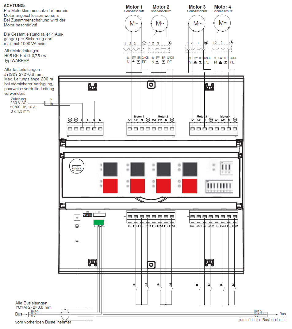 - Eingänge für lokale Taster (Einzel- oder Gruppensteuerung)