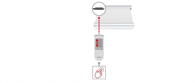 - Drücken Sie am Hand-/Wandsender eine der Tasten HOCH oder TIEF, bis die LED in der Radiotronic wieder erlischt. Lassen Sie die Taste sofort los. Der Sender wurde erkannt.